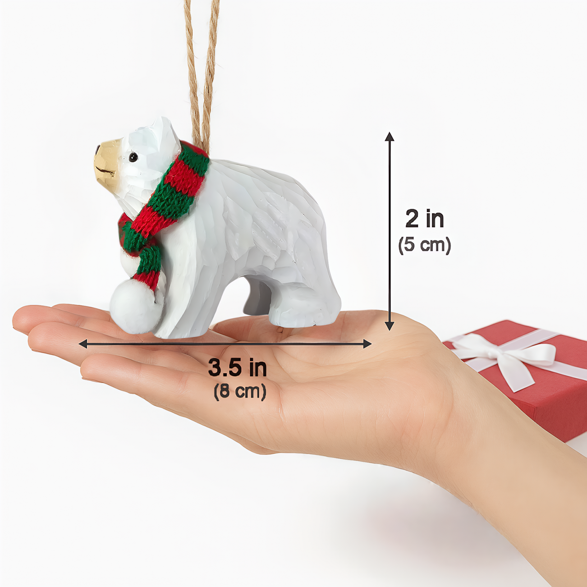 Cozy up your tree with this hand‑carved Bear Ornament, finished with a cheerful red‑and‑green knit scarf and fluffy pom‑pom. Each bear is carved from natural wood, hand‑painted, and sealed for a durable satin sheen. It’s feather‑light for safe hanging and ships gift‑ready in a keepsake box—an instant hit for nature lovers and holiday décor.